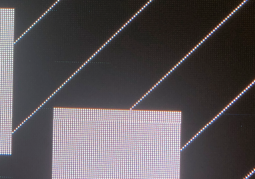 a.其他PWM配置在1920Hz刷新時跨板色差有一定程度的減輕,在3840Hz刷新時跨板色差嚴(yán)重且有首行暗線出現(xiàn);